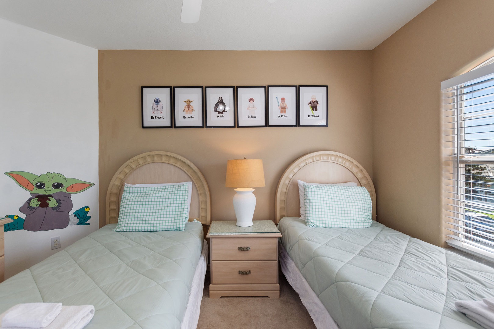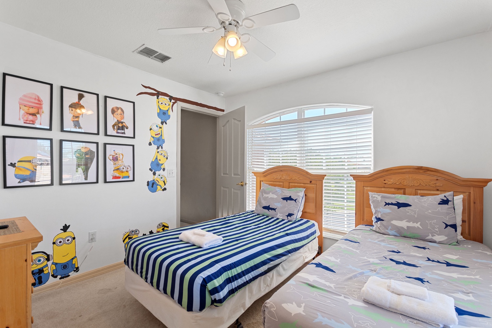 Bedroom 5 – Twin Room (Sleeps 2): Two twin beds, shared access to hall bathroom.