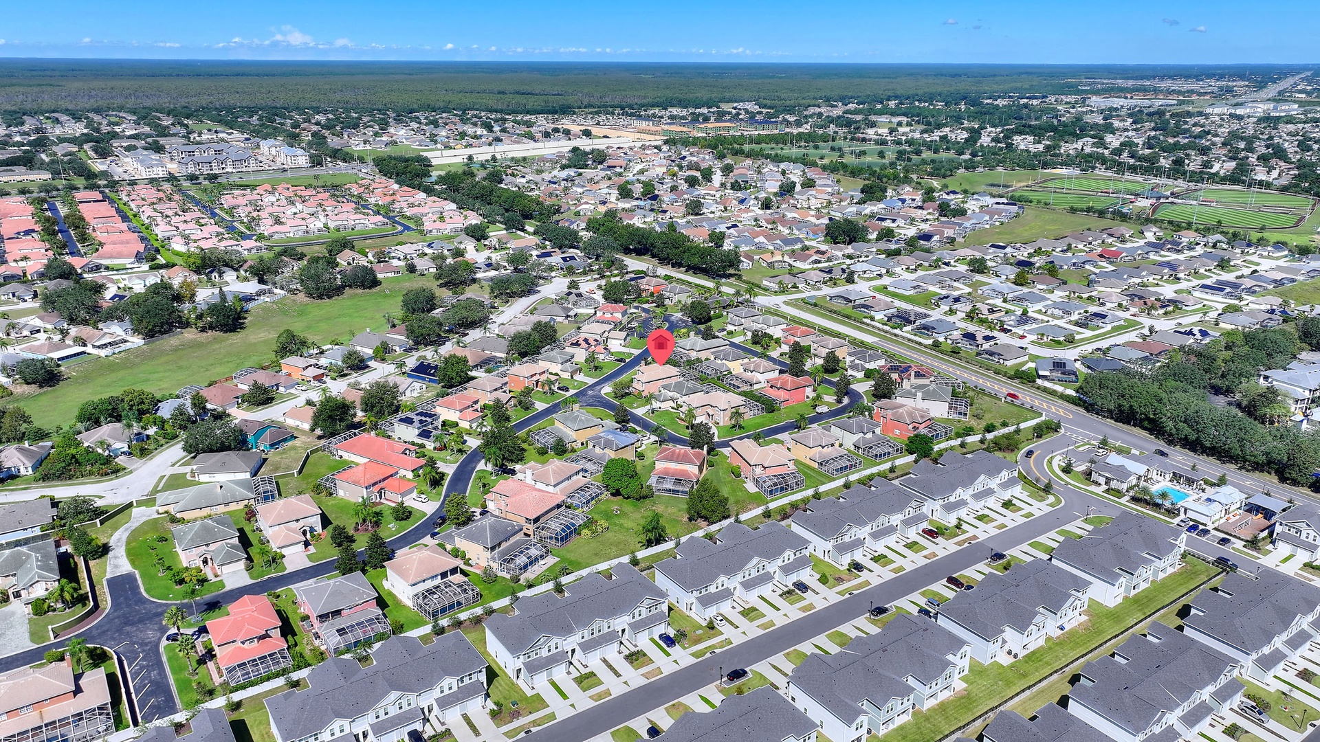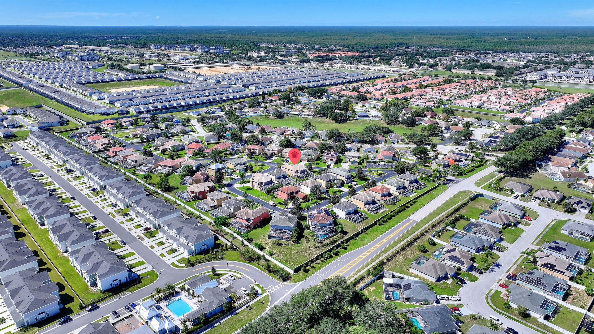 Welcome to Sunset Corner Retreat, a spacious 6-bedroom, 5-bathroom home with its own private pool and spa, located in an exclusive gated community near Disney. Perfect for families, golfers, and groups who want space to spread out, this home has two living areas, a games room, a dining area, a breakfast nook, and a large upstairs landing that creates the central heart of the home.