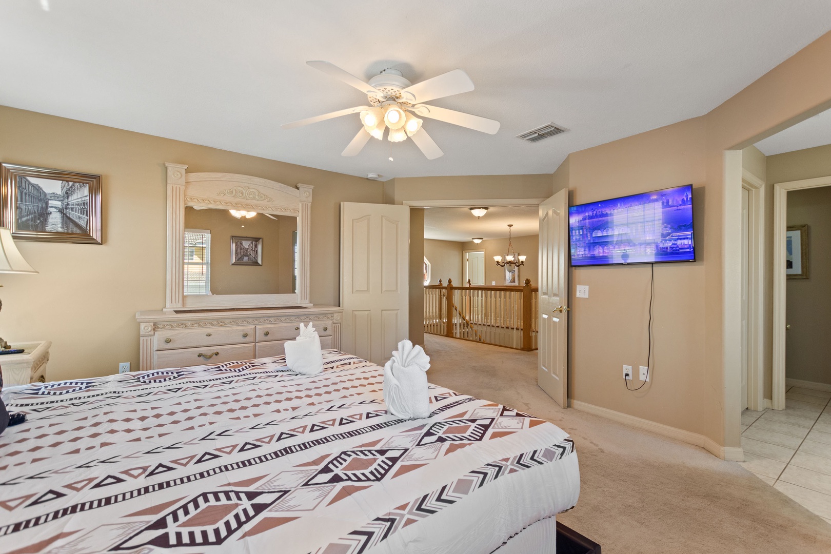 All bedrooms are upstairs, each with a Smart TV ready for streaming.