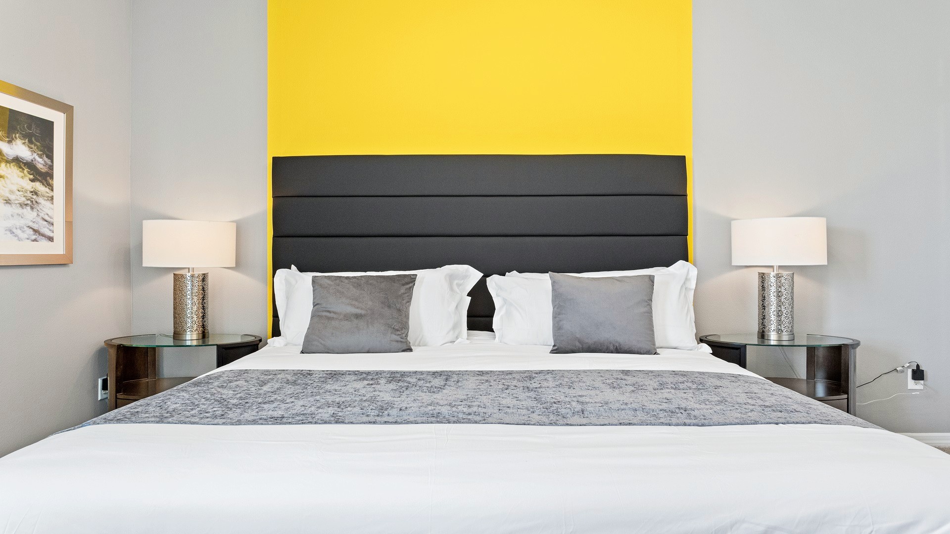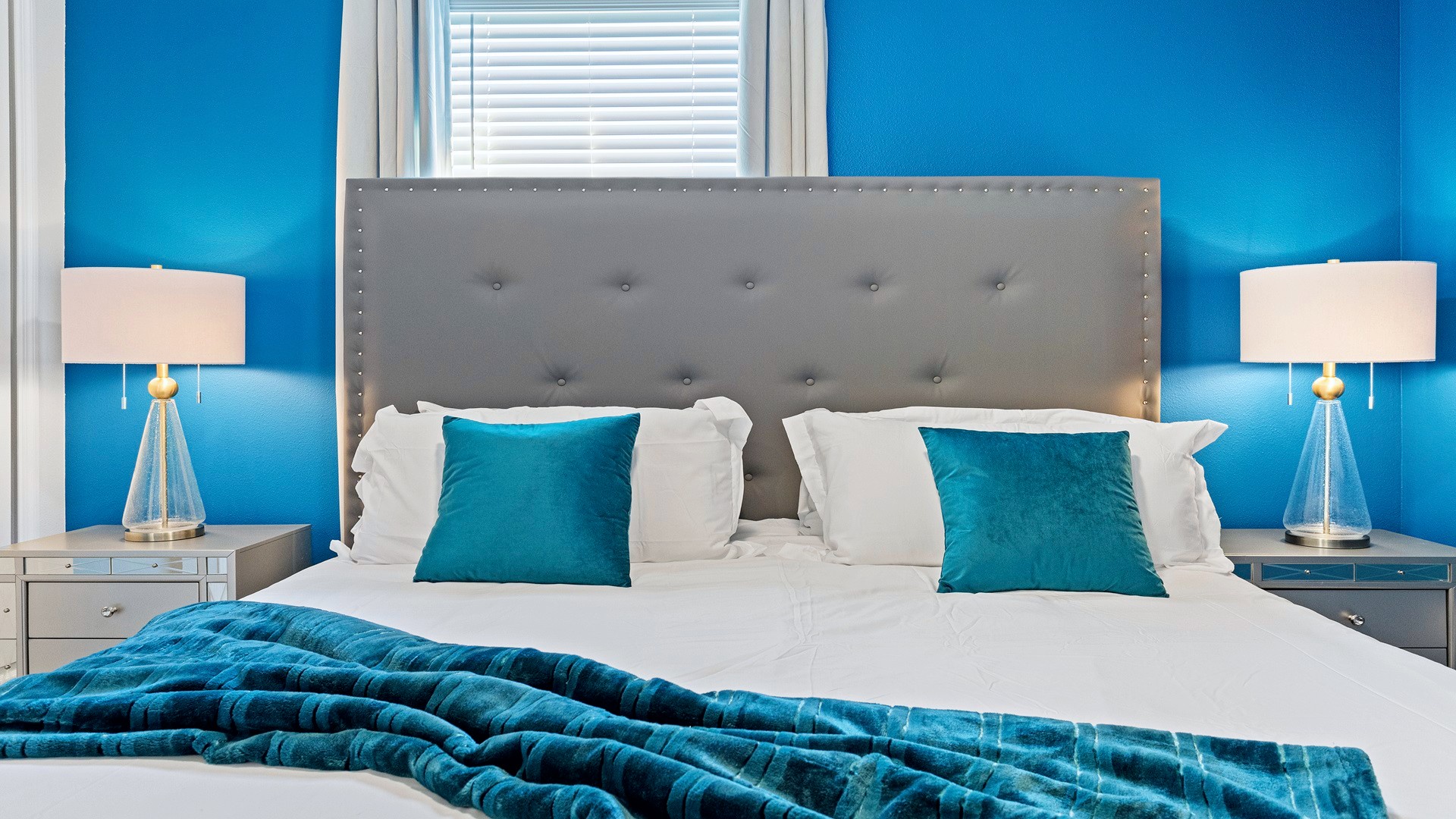 King Pearl Suite (Sleeps 2 + infant): King bed, crib provided (bring your own linens), shared Jack and Jill bath with Deep Blue Suite.