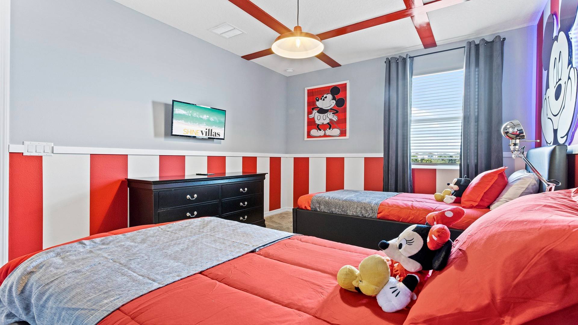 Mickey and Minnie Room (Sleeps 2): 2 Twin beds, adjacent family bathroom.
