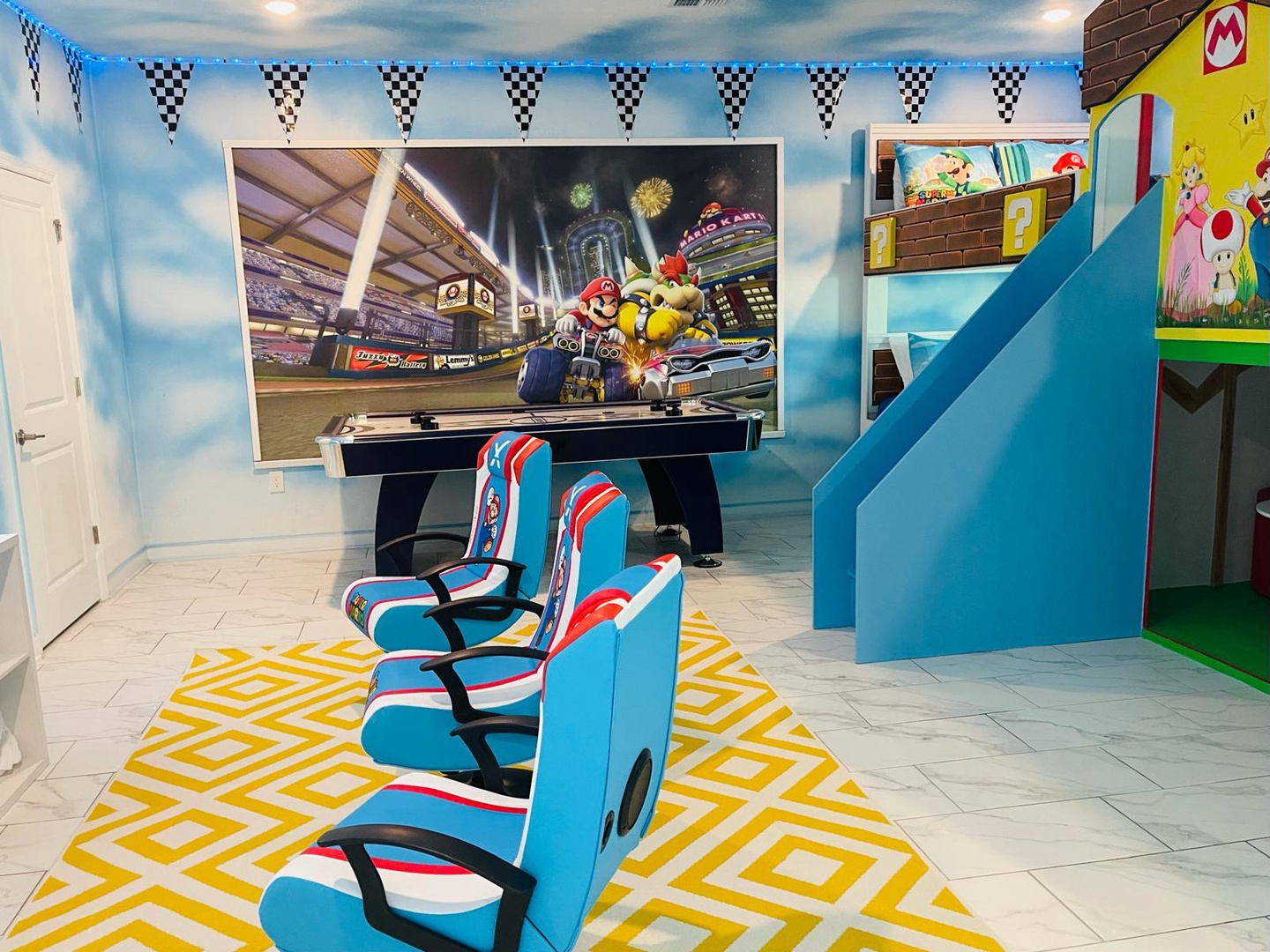 • Themed Bedrooms – Featuring Super Mario with a slide, Harry Potter, Disney Princess, and Jurassic Park rooms!